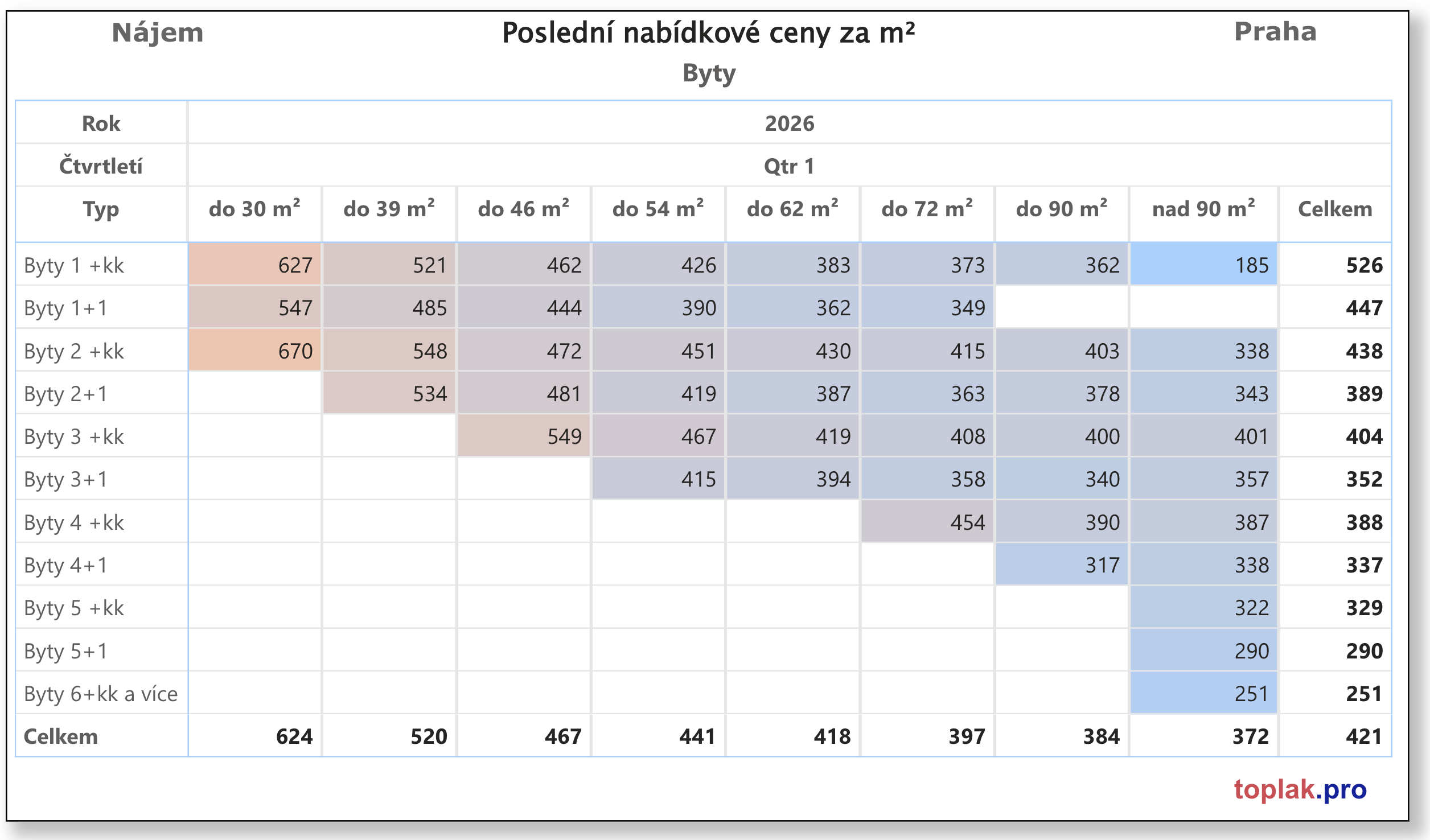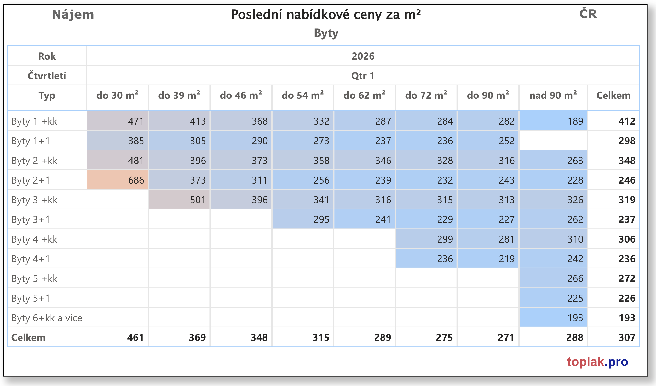 - malé byty mají nejvyšší nájem za m²