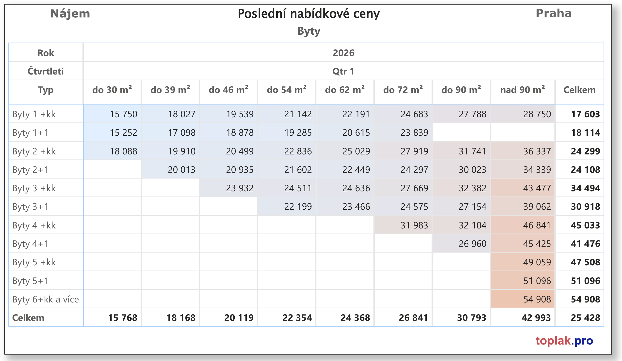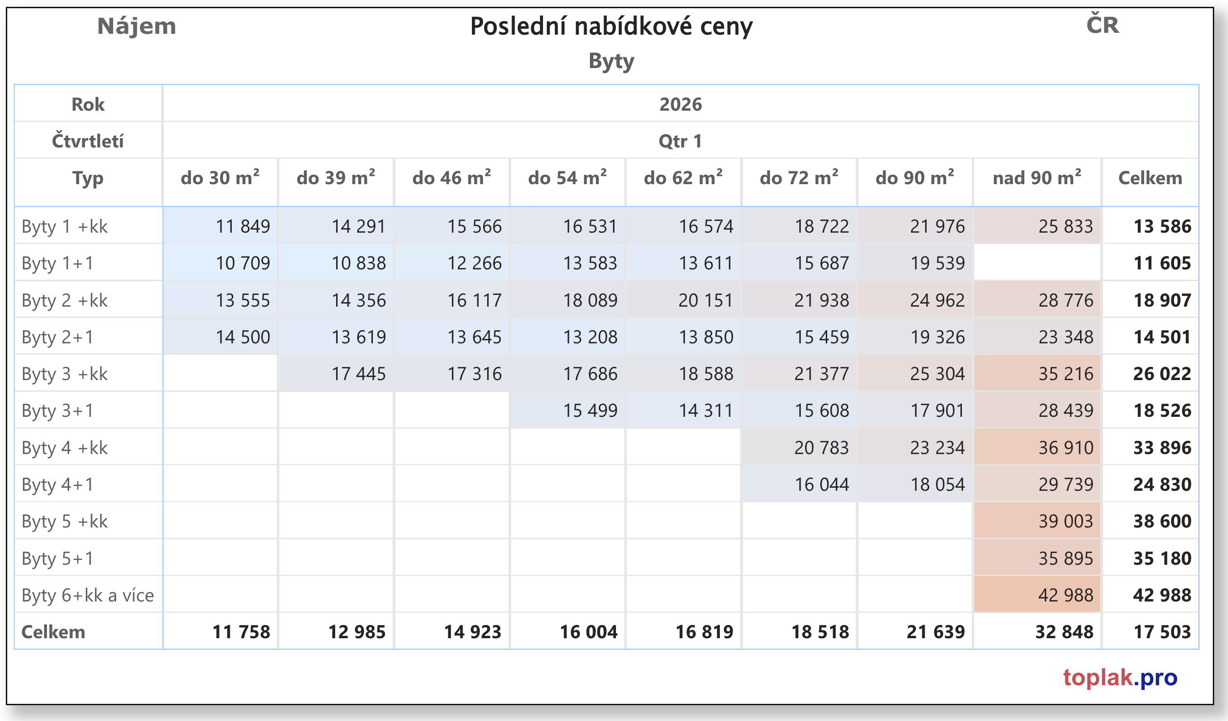 Nájem – cena za m² (ČR)
